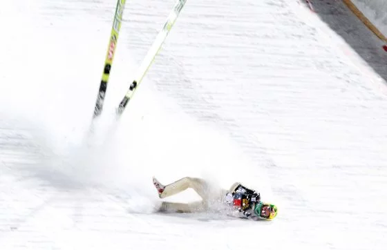 Nieszczęśliwy upadek Toma Hilde (fot. JERZY KLESZCZ / Newspix.pl) Źródło: Newspix.pl